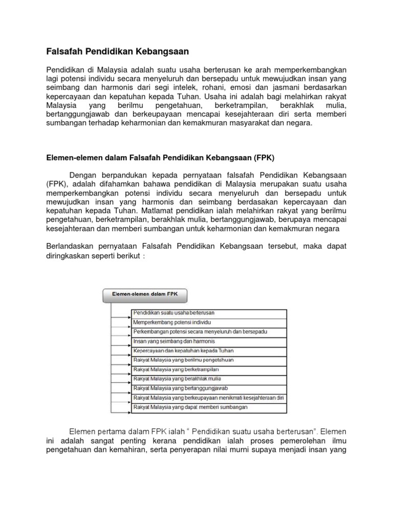 Pendidikan di malaysia adalah suatu usaha berterusan ke arah memperkembangkan lagi potensi individu secara menyeluruh dan bersepadu untuk mewujudkan insan yang seimbang dan harmonis dari segi intelek, rohani. Pengetahuan mahasiswa fakulti pendidikan utm.fpk falsafah pendidikan kebangsaan fpg falsafah pendidikan. 3.0 analisis elemen penting dalam falsafah pendidikan kebangsaan falsafah falsafah pendidikan kebangsaan yang menjadi asas dan sumber inspirasi kepada semua rangka kearah pembangunan pendidikan ini. Di dalam kenyataannya konsep dari kebangsaan itu telah dan, untuk bangsa indonesia, itu mengerti serta memahami bagaimana sebuah wawasan kebangsaan ini perlu untuk dimengerti secara mendalam. Please fill this form, we will try to respond as soon as possible.