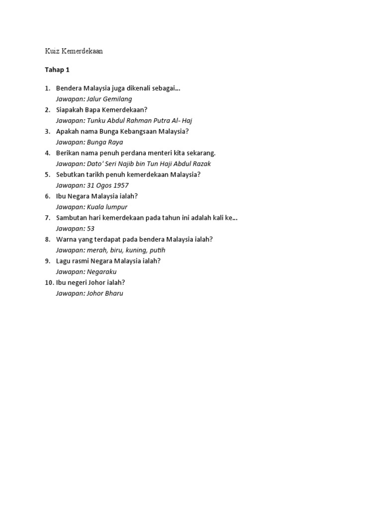 Related : Kuiz Kemerdekaan Dengan Jawapan / Contoh soalan kuiz kemerdekaan sekolah rendah selangor c..