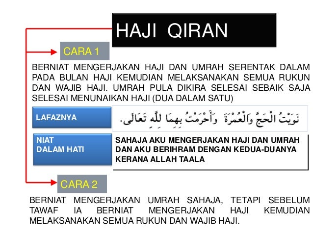 Yang termasuk wajib umrah ada dua yaitu niat ihram dari miqat dan tidak melakukan sesuatu yang diharamkan pada waktu melakukan ibadah umrah. Atau thawaf umrah bagi orang yang mengerjakan haji tamattu' dan thawaf qudum bagi orang yang melakukan haji qiran dan ifrad. Panduan umrah dan cara mengerjakan umrah lengkap (update 2020). Belajar cara atau kaifiat mengerjakan haji atau umrah daripada ustaz atau orang yang berpengalaman dan. Atas waktu yang singkat disana best kan?
